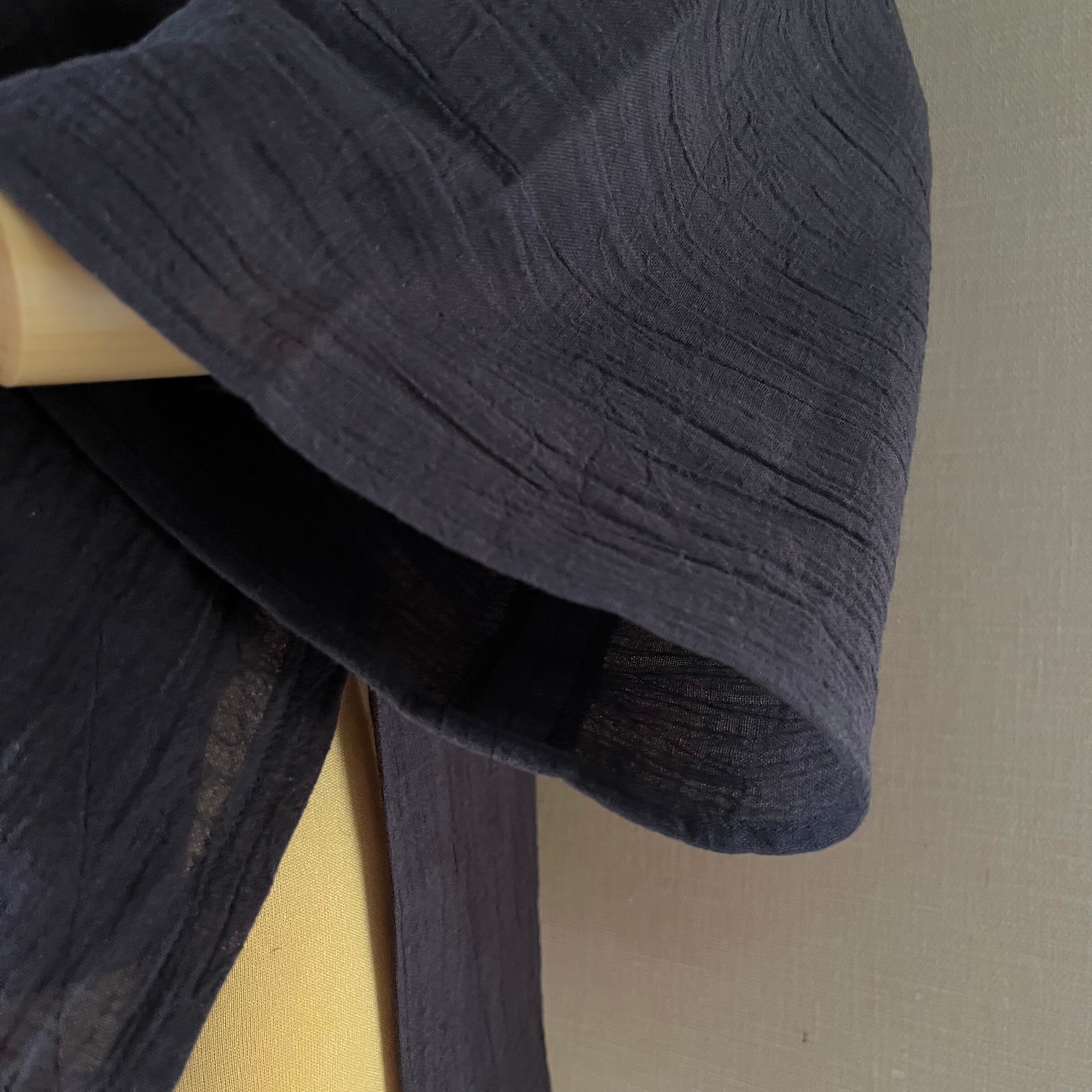 墨クロ 綿麻ワッシャー筒袖半襦袢
