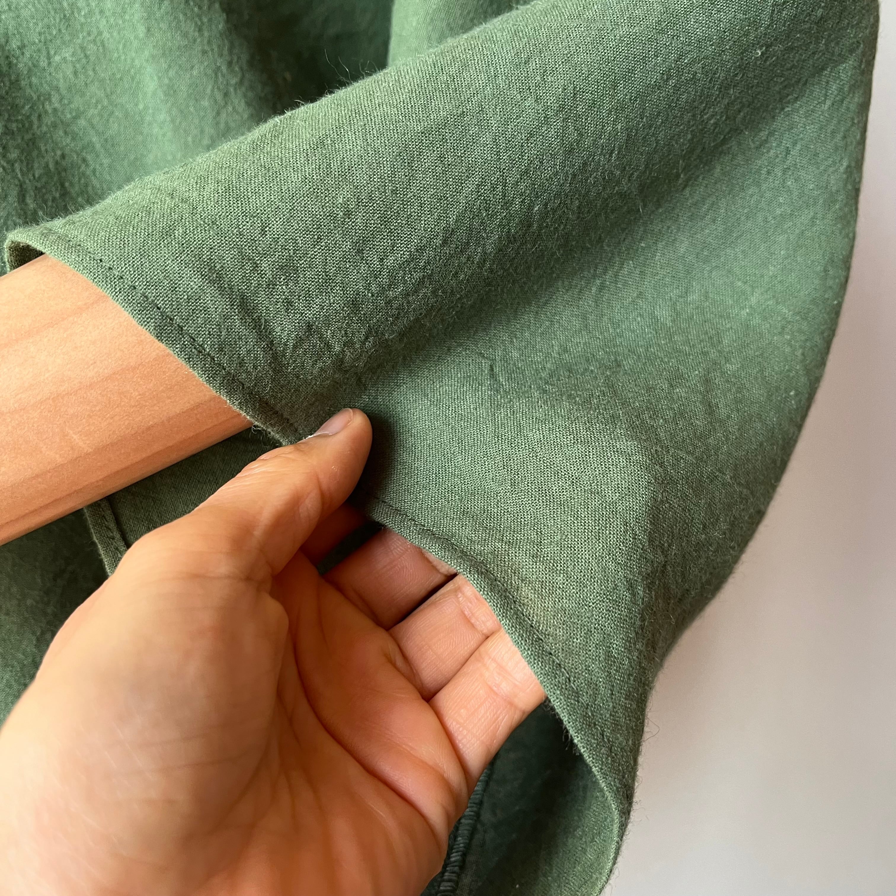 ※ 水通し後に製作しておりますが、最初のお洗濯で少々の縮みがあります。縮みを考慮して、上記の寸法より少々大きめでお届けします。
